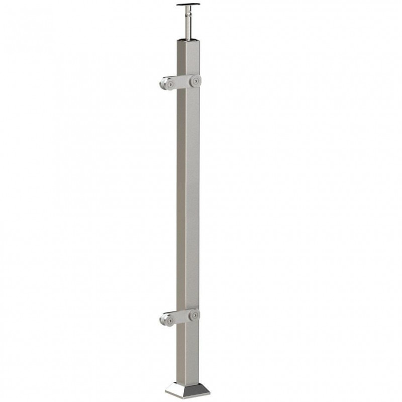 Стойка квадратная 40х40 мм из нержавеющей стали с пластинчатыми стеклодержателями
