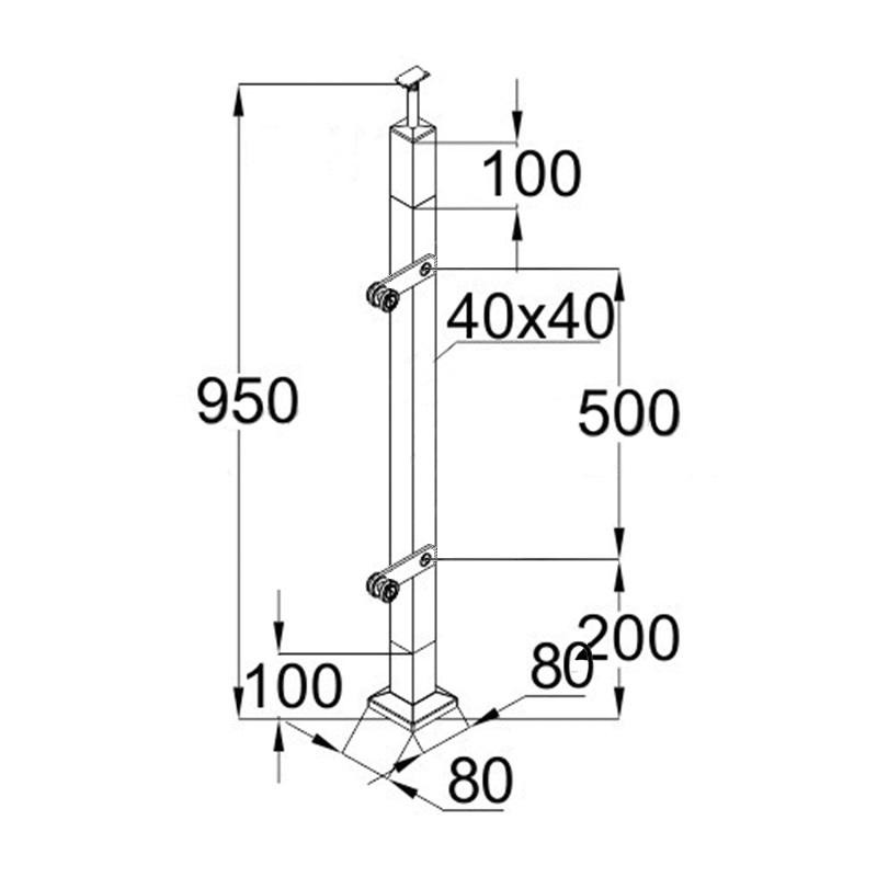 Стойка квадратная 40х40 мм с пластинчатыми стеклодержателями, деревянная со вставками из нержавеющей стали.