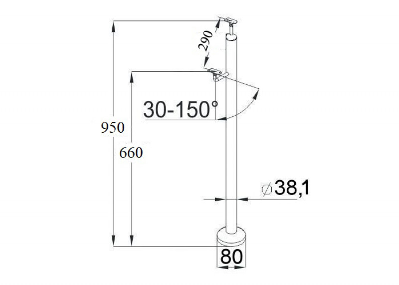- стойка полированная круглая Ø38.1 мм с приварным фланцем - 1 шт.