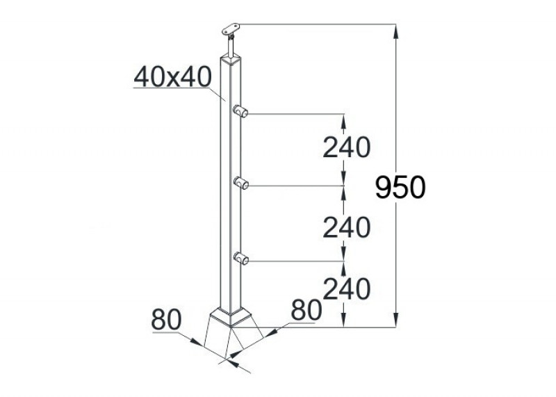 Стойка квадратная 40х40х950 мм из нержавеющей стали с 3 ригелями