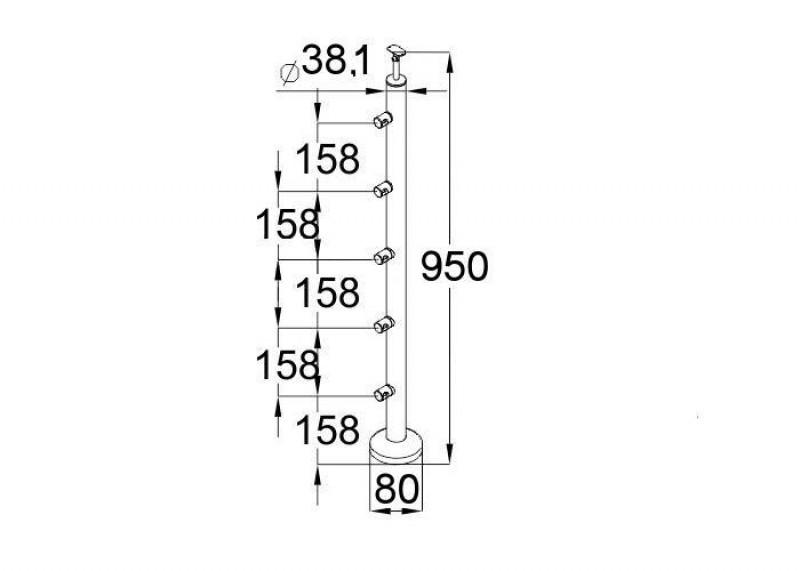 - стойка сатинированная круглая Ø38.1 мм с приварным фланцем - 1 шт.