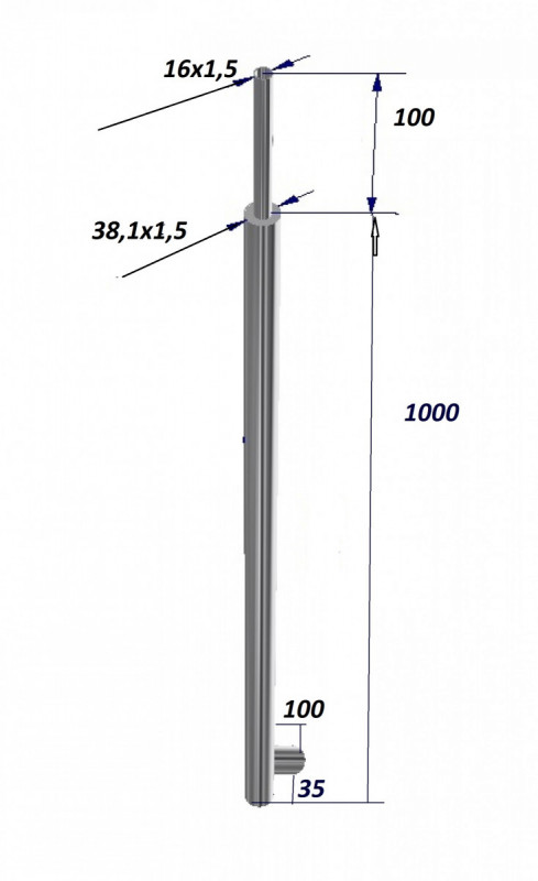 Стойка круглая Ø38,1х1,5 мм, полированная, высота 1100 мм с боковым креплением