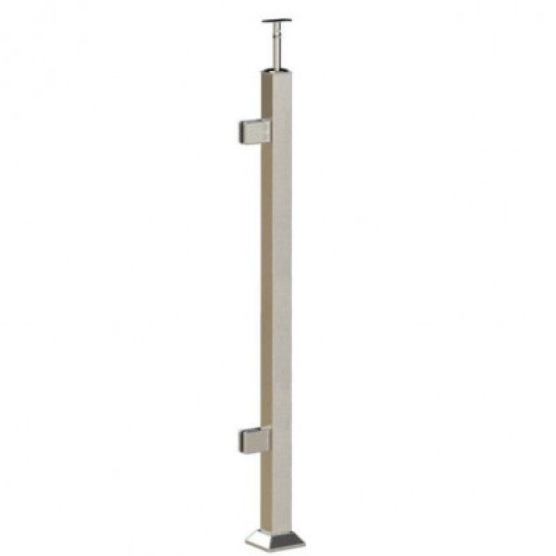 Стойка квадратная 40х40 мм из нержавеющей стали с 2 квадратными литыми стеклодержателями