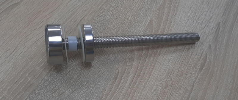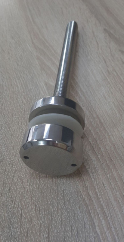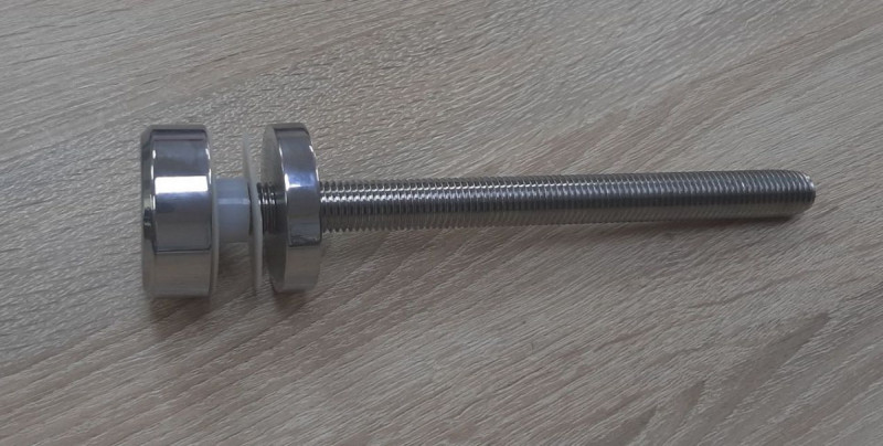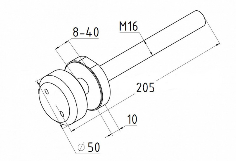 Установка: Точечный стеклодержатель для торцевого крепления несущего стекла в диапазоне от 8 (4+4) мм до 40 (20+20) мм. Диаметр наружной и внутренней шайб по 50 мм. Шпилька диаметром 16 мм и длиной 200 мм, под нагрузку 2 тонны.