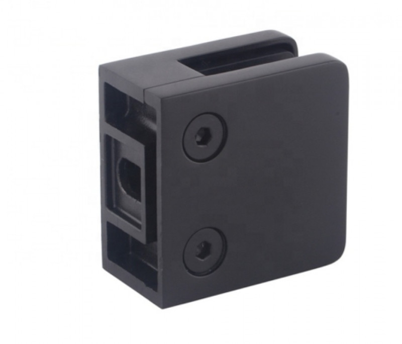 1. Стеклодержатель делим на две части, выкрутив шестигранники. В стойке выполняем отверстие для вытяжной резьбовой заклепки под винт для монтажа кронштейна. Закрепляем деталь стеклодержателя, которая является несущей, к стойке внутрь посредством винта или самореза из нержавейки. Стекло закрепляется посредством установки второй части кронштейна.