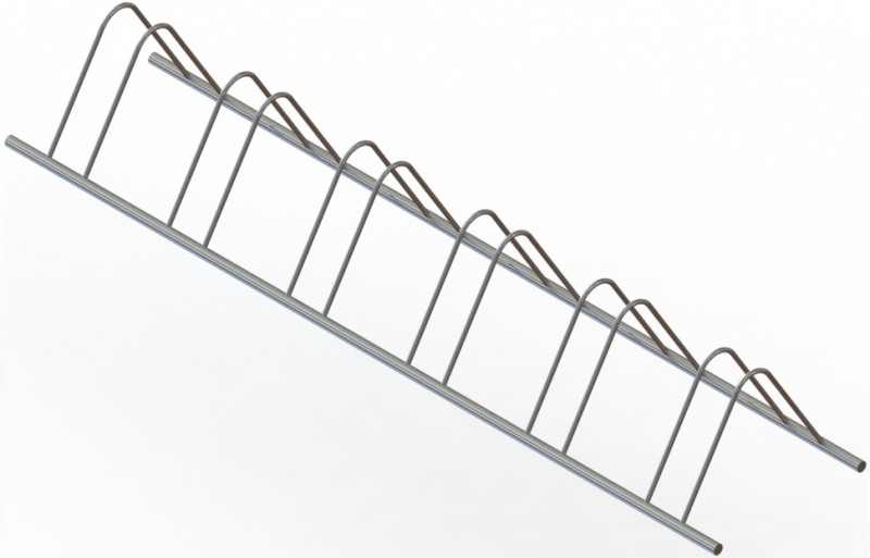 Велопарковка рассчитана на 6 велосипедов. Для каждого из них предусмотрено отдельное место из двух дуг Л-образной формы. Для производства многоместной велопарковки использована нержавеющая сталь AISI 304: