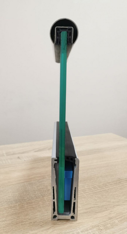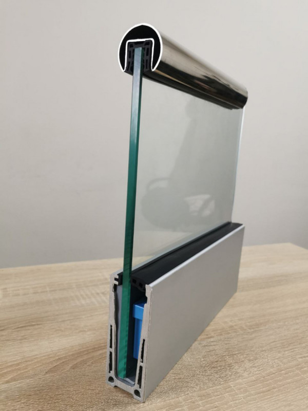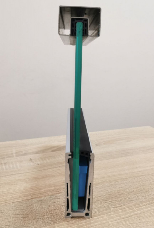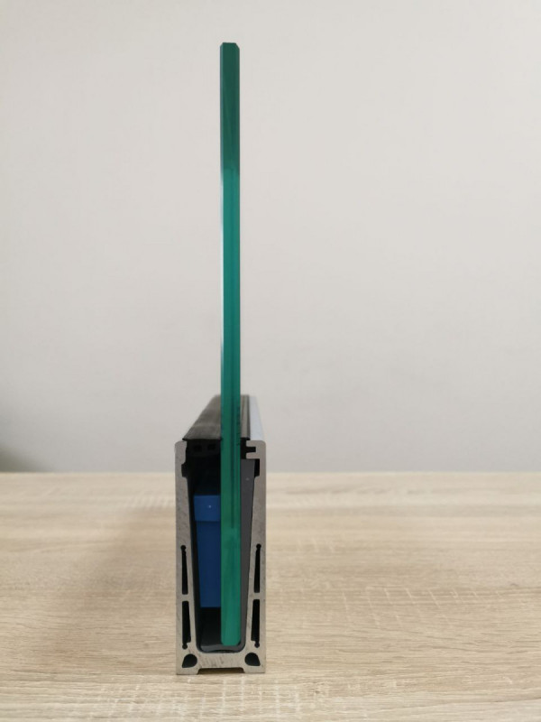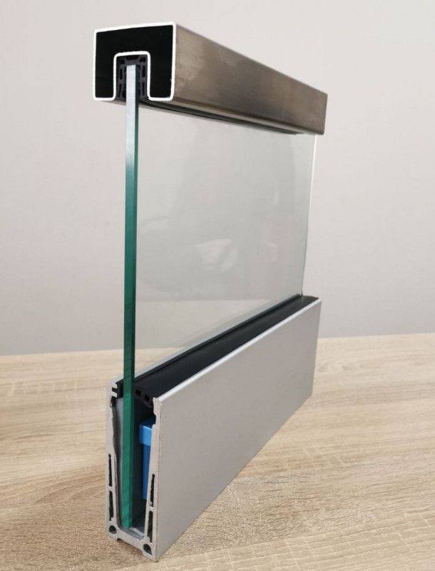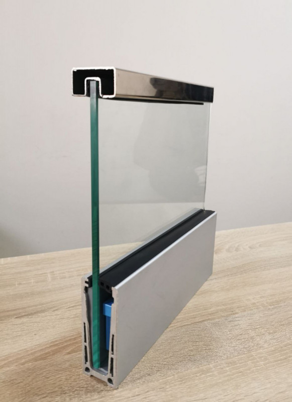 1) Зажимной алюминиевый профиль, анодированный, для стекла 10-16 мм (00220)